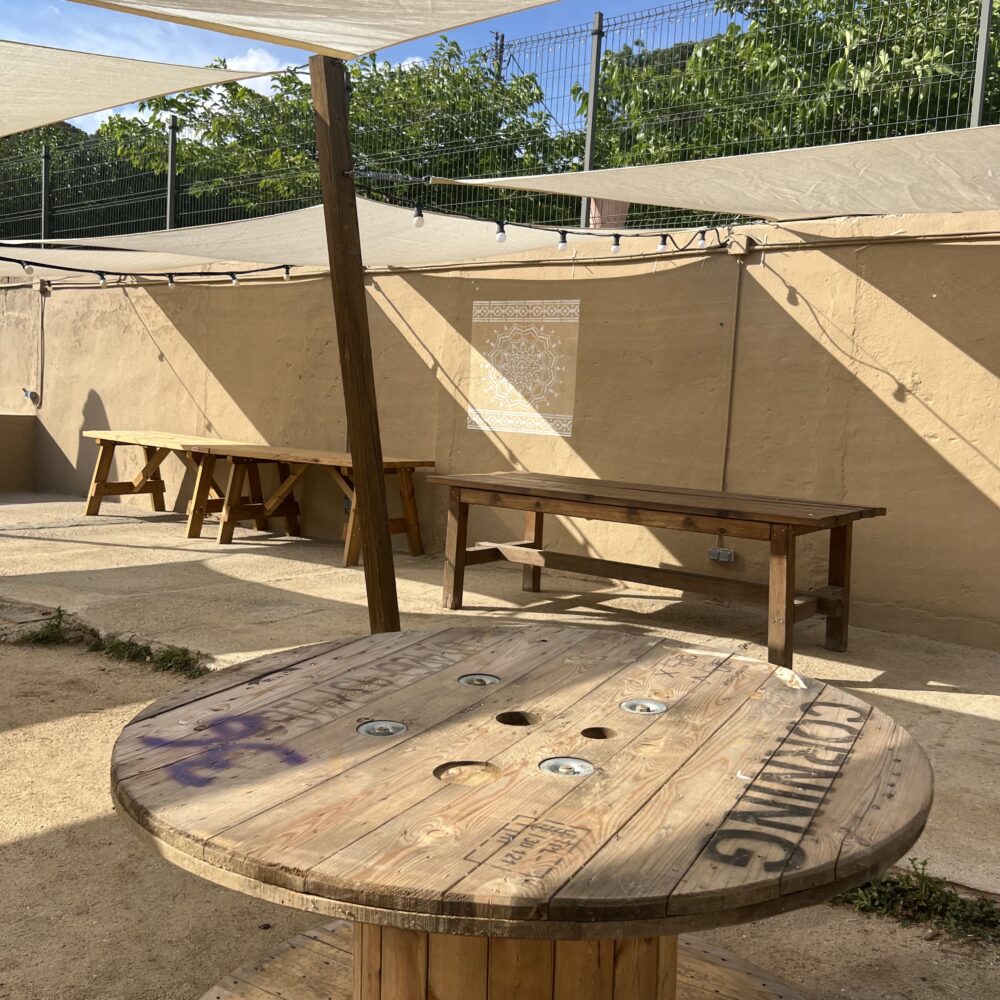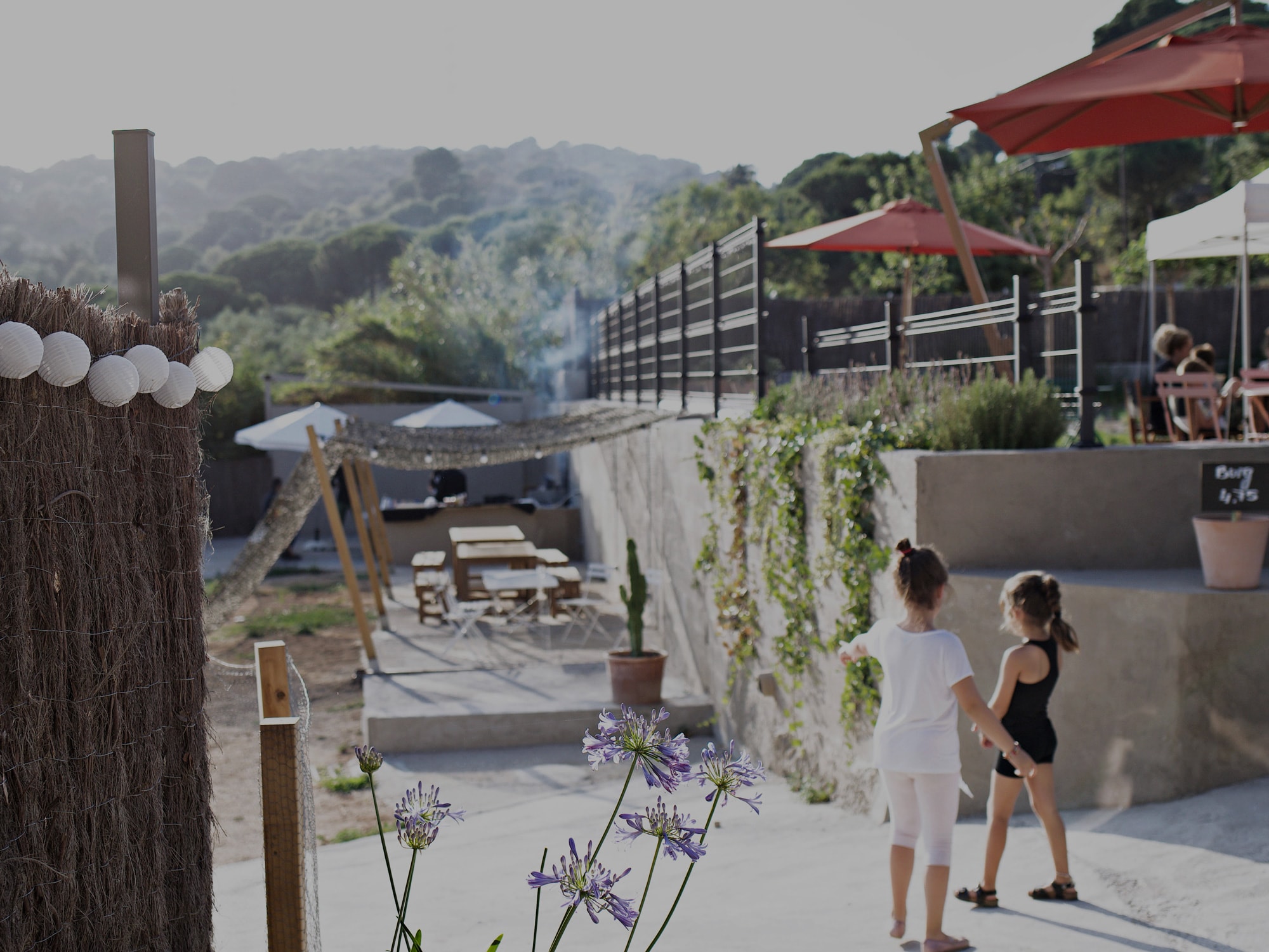 Un ESPACIO JARDÍN de 400 m2 con barra de bar, barbacoa, terrazas, toldos vela, mobiliario, mesas y sillas, iluminación, wifi.